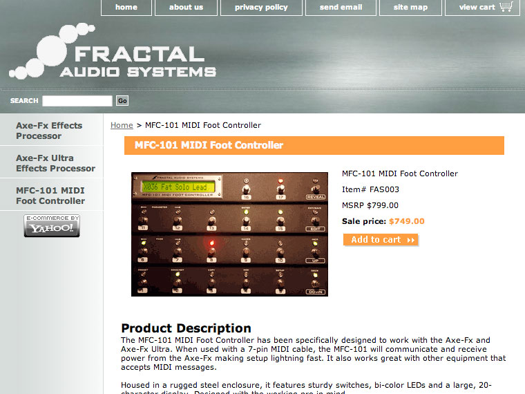 Fractal Audio→PurdhaseでプルダウンメニューからFractal Audioを選択→BUY NOWと書いてあるカナダとアメリカの国旗がついたボタンをクリックで辿り着けます。MFC-101 MIDI Foot Controller