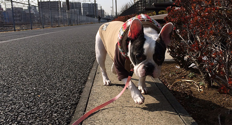 診察が終わって外に出ると気持ちが楽になるのか大抵地面をお汚しします。その後何も無かったかのようにさっさと散歩コースに戻ります。