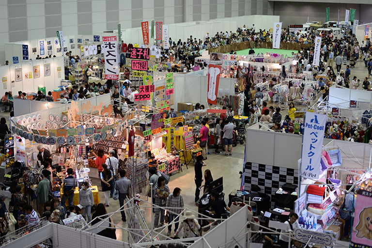 会場内は洋服・グッズ・ペットフード等30数店が出店、ドッグショーブースや軽食コーナーなど自分のワンコをつれて楽しめるようになってました。左写真はホワイト・コリーのドッグショー。
