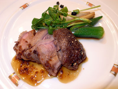 ・シャラン産カモのローストはちみつと黒胡椒風味(写真)
