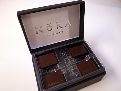 NoKA CHOCOLATEをば。頂きました…自分じゃ買いません。なんせ極小の板チョコ、20円のチロルチョコの半分の薄さが4枚入って3000円です。世界で最も純粋なシングルカカオのチョコレートらしいです。意味が分かりませんが(^^;)で、ホームページを開いたら美味しい食べ方が載っていたので紹介します。