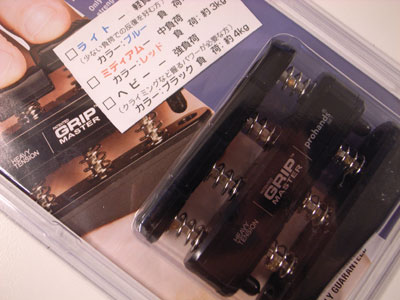 早速握ってみた…あれっ?変わらんか…騙されたか???ミディアム・テンションは負荷3Kg、ヘヴィー・テンションは4Kgと数字上ではあまり変わらないのでそんなもんかと思った。ところが連続で20回もニギニギすると突如乳酸がたまるが如く指が跳ね返された…ま、違いない…やはりヘヴィーである。指を壊さないよう続けたい。