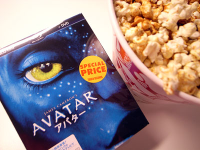 野暮用で夕方近くのショッピングセンターへ出掛けた。黄色い憎いヤツTower Recordの前を通るとAVATARの大宣伝…嫌でも目に入ります(笑)今なら1000円引きの文字についつい財布の紐がゆるんだ。タイミングよく隣にはTOHOシネマもある…大好物のキャラメルポップコーンをテイクアウトして自宅シネコンを楽しむ事にした。