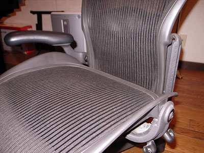もう15年くらい前になるだろうか自宅での仕事&パソコン用にHermanMiller社のAeron Chairを購入した。もともと腰が悪いので贅沢だけど高機能な椅子を選んだ…のか?…忘れてしまった。その後ジュニアが成長し学習用に横取りされていたのだが、このたびめでたく戻って来た。仕事用では無くオフコース、ギター用が目的。たまっていた埃をキレイにクリーニングし角度調整。ギターを抱えて腰掛けてみると案の定アームが邪魔であった。最下部まで調整してもギターのボディーと干渉してしまうので思い切って取り外した。ギタリスト使用のアーロンとなった(笑)
