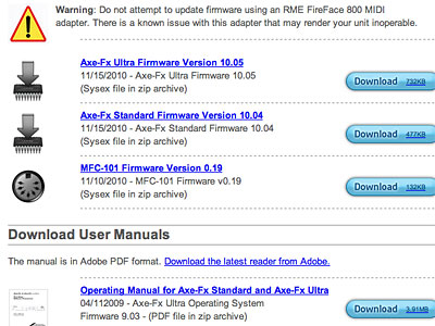馴染みの某楽器店のスタッフさんから「バージョンアップありましたよ」と教えていただいた。HPを見ると2月3日にアップしたばかりだった。Axe-Fx Standardには10.04、Ultraには10.05のファームウェアアップデータがアップされている。今回のアップデートは先日発売されたばかりのMFC-101を使った時のバグの修正ってところなのだろう。とにかく何でもバージョンアップ派なのでインストールしておいた。