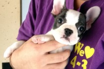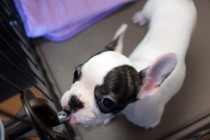購入後二週間以内の無料健康診断の日でした。多少皮膚に発疹があるもののすこぶる健康なのだが膝蓋骨脱臼の疑いがあるとのこと。これは膝のさらが正常な位置から逸脱した症状のことらしいのだが小型犬種に多い病気なのだとか…と言ってもOHANAは今のところ4グレードの1にも満たないレベルなので診察のたびに様子をみるという程度だった。脇腹をさわるとグリグリと肋骨が確認出来るのでもう少し食事の量を増やすよう支持を受けた。それと皮膚の弱い犬種なので食事の後はお口の周りを掃除してくださいと言われた…いちいち手が掛かるやっちゃ(^^ゞ