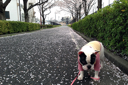 OHANAの散歩でいつも通る3〜40メートルのかな〜りちょっとした桜並木。もう終わりでしょうか花びらが風に舞ってました。路面に広がるモザイクのような花びらが。ところどころ風の吹き溜まりには小山になって。雰囲気いいです。最後まで楽しませてくれますね。と、そんな中OHANAの歩く速度が遅いです。花びらに興味津々。リードを緩めて長く伸ばし自由にしても動きません(笑) 続きを読む