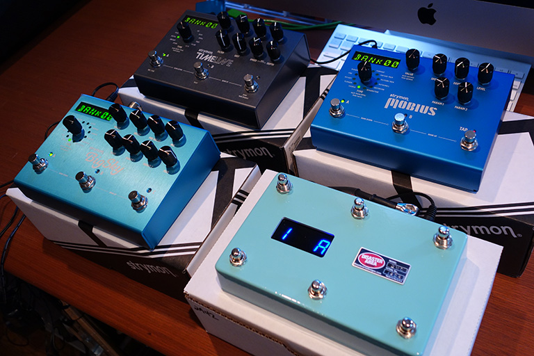 Strymon3兄弟のMobius・TimeLine・Big Skyを繋いでチェックしました。