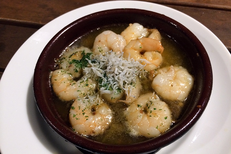 「エビとシラスのアヒージョ」間違いなくスペイン。この料理を注文した時に何故スペイン?と尋ねたのでありました。まっ、好きだし旨いからいいけど。