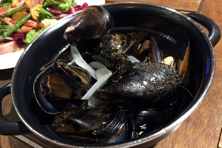 そして「ムール貝の白ワイン蒸し」…ちと心配でしたが臭みもなくこやつは旨かった(笑)こちらもベルギーか。