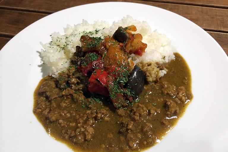 で、〆には「プロヴァンス風挽肉カレー」を頂きました。フランスっすよね。〆くらいベルギーだとは思いますが近くの席の方が食してるのが旨そうで注文してしまいました。カレーの上にラタトゥイユが乗ってやんの。注文時に言ってくれればラタトゥイユは止めたのに(^^;