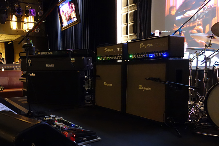 アンプと機材です。 ルカサーさんはBogner2発、さぞやうるさいのかと思いきや場所が先生のBludoよりだったのでラリー先生の音でかき消される事が多かった(^^;
