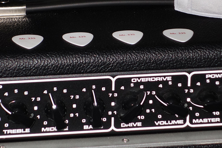 アンプの上には見慣れないピックが4枚。どうやら先生ピックを変えたようです。キーホルダーとしてこのピックが売店で売られてまして1つ購入しましたがメーカー&詳細分からずでした。裏には先生のサインが入ってます。