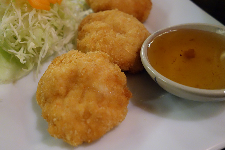 タイ風海老すり身の揚げ物。こやつはホクホク&風味良しでした。そのままでもタレにつけても旨いっす。