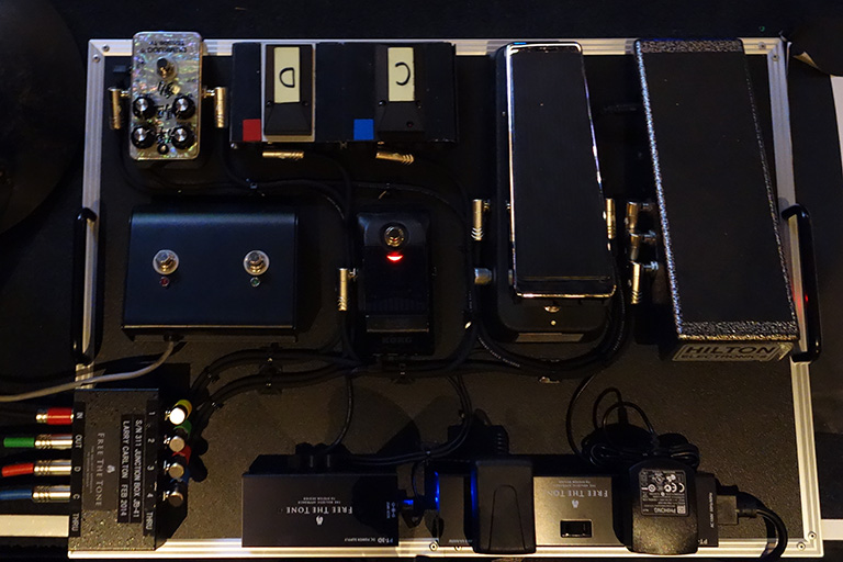 Reverbをcrazy tube circuits splashからH9へ変更。Free The Tone Flight TimeとそのReverb用H9はTrial製パラレルミキサーで混ぜてます。それとスイッチャー復活です。電源はGigRig Generator一発。H9はGigRigのEvenflo、 Flight Timeも同社製supa-novaのアタッチメントを付けてます。それ以外のペダルはやはりGigRigのisolatorでなるべく干渉しない様電源を供給。