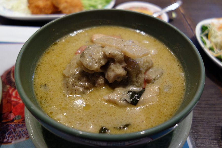 私は鶏肉のグリーンカレー、ゲーン・キョワン・ガイ。やっぱ旨いわぁ。これだけでも来た甲斐ありました。