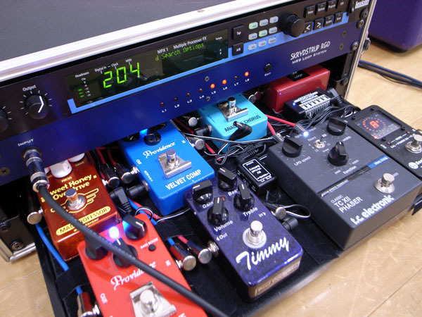 主審さんはラック系エフェクターMPX-1とFootペダルをSKRYDSTRUP R&D MR-9とBOSSのMIDI FOOT CONTROLER FC-50を使ってパッチチェンジさせる通称「おかもちSystem」で参戦…こんなん出来ればいいなぁと思っていた夢のシステムである。空間系のMPX-1をBigShotでパラレルにしてOutPut…いつもながらにこだわりのシステムなのである。それとなんと言っても空間系MPX-1の作り込みが凄い。Kon Sound,Toriyama SoundそしてLA Soundと相変わらずの作り込みに感心しきりであった。6月19日(日)六本木Club Edgeで行われる主審さんのバンドTokyo AOR Stationの1st Liveが非常に楽しみになりました。