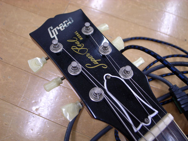 やまさんは、前々から是非弾かせて欲しいとおねだりしていたGRECO EGF1200を持参してくれた。やっ、ばーいよこれは!! 思わず自分の名前を書きたくなりました(^^; 残念ながらVintageの音をあまり聞いた事、いや弾いた事がないので何とも言えないけど、たぶんそんな感じなのだろうと想像させるギターでありました。4キロオーバーの個体と仰ってましたが、持った感じは数字以上遙かに軽い感じがしましたね…きっとバランスがいいんでしょうね。