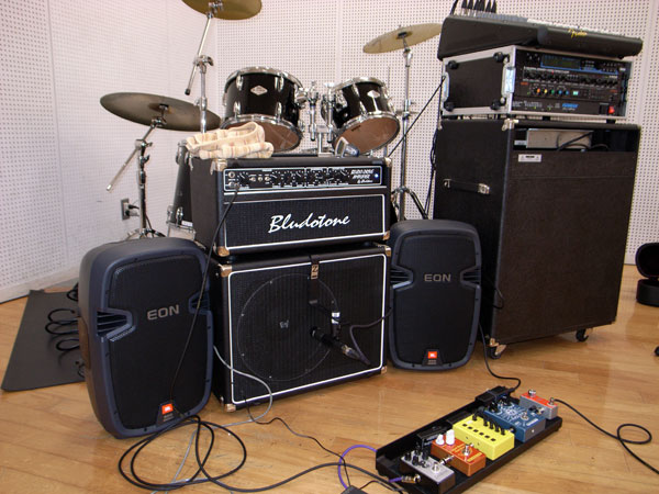 私はなんちゃてLarry Systemで参戦。BludoToneで初めての爆音であった。自宅ではそこそこうまくいっていた3chネルだが、持ち出し、しかも爆音となるとそれなりに心配があった。マイクを使ったエフェクトなだけにラックエフェクターの調整だけでなく、Mixerのgain調整やらパワードの音量調整と、果たして短時間で納得出来るサウンドになるのか?また機嫌をそこねて音が出ないなんて事になったらガッカリなのだ。で、結果はと言うと自分としては申し分ありませんでしたね。これで文句を言ったらバチがあたっちまうっしょ(^^;