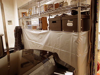 スマートな置き場がそこしかないので仕方がないのである。エレクターなので背面もスケスケ、なのでもろに後ろにも音が飛んでしまう。で、先日御用達の島忠で工具を買うついでにインテリアコーナーを覗いたらそこで銀色のアルミ樹脂コーティングをしている遮音カーテンを見つけた。カット自由と書いてあり、腰高まで塞ぐのに丁度良さげだったので購入した。3kと手が出しやすかったしね。ところが開けてびっくりペラペラ(^^; ダイソーで買ったミニクリップでエレクターに留めた姿はまあまあだったが、アンプから音を出すと思った通り何も変わらなかった(^^; 多少埃を防いでくれそうなので良しとするか。