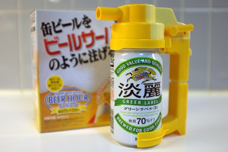 昨年だったかどこかのビールメーカーが缶ビールの飲み口に装着して上手に泡立てる小型のメカをその場で当たるくじでプレゼントしていた。何度かトライしたものの見事にハズレた。これはそのメカに取っ手を付けたようなTAKARA TOMYのHandy Beer Server BEER HOUR ビールアワーって製品。東急ハンズで発見した。単四の電池駆動で泡立てるのだがなるほど上手に泡立つ。