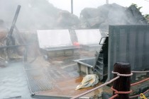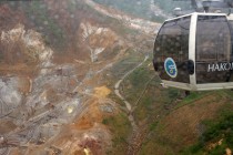 強羅到着後はケーブルカーで早雲山、そしてロープウェイを乗り継いで大涌谷駅に到着。昨日同様雲行きが怪しくなり雨が激しくなって来た。風も出てきてロープウェイが少し揺れるほどだったが霧は出ていなかったので噴煙を見る事が出来た。