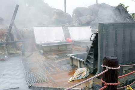 右写真は黒たまご製造場所。硫黄のにおいがぷんぷん。また風呂に入りたくなっちまった(笑)