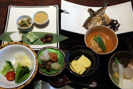 朝からこんなにいっぱい(笑)干物は鉄板ですな。全体的に薄味で朝の胃には素敵な味付け。