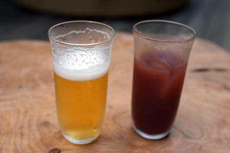 で、もう一つの小型のオケ風。こちらの湯加減はぬるめ…なので長湯には最適。湯上がり後は1Fガーデンラウンジでぷちドリンクサービス。思わずシャッターを押す前に一口飲んじまった…ぷちサイズなだけに今思うと良く途中で思いとどまったな…と(^^;