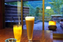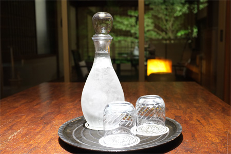 仲居さん本日最後のお勤めは冷えた水差し。温泉で乾いた喉をうるおすのに最適な軟水でした…たぶん。夜中に何度飲んだことか。