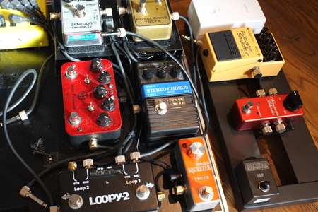 アコシュミ常時ONでOne ConでOn/Offですね。仰る通りLooperにLooperっす。Loopy2の1チャンネルにコーラスとディストーションを入れ込んでますがそのLoopにOne ConをかましてAC3って感じです。好ましくありませんが駄目ではなかったです。ノイズや音質を考えますとしたくないですが間に合わせですから(^^; それに使わないときは直ぐに切り離せます。