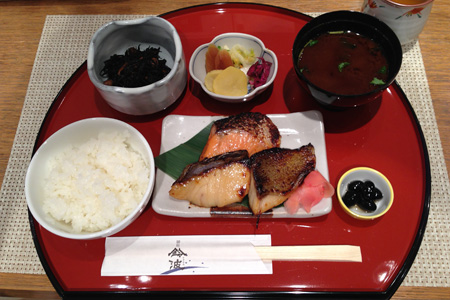 プレゼントを買いに三越へ。最近と言うか年間通して何度行くのだろう(^^; めずらしくすんなりとプレゼントが決まってしまって少し早めの夕食をとった。いつもなら銀ブラしながらメニューを決めるのだが本日はデパ地下のカウンターに座りたくなった。銀座三越の地下は数週間おきのローテーションで出店が変わり今月は粕漬けの鈴波が店開きしていたので迷わず着座「味比べ定食」を注文した。