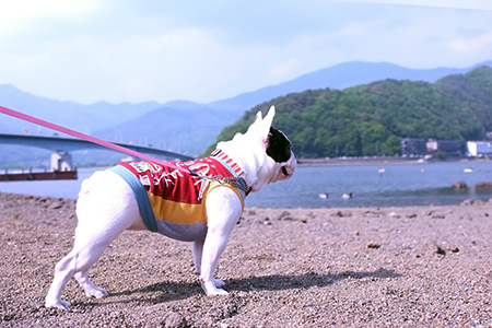 OHANAを連れて河口湖湖畔にある古民家の店「ゴロンパ」へ行って来ました。フレブルの洋服専門店です。OHANA御用達の服はここのネットショップでお取り寄せしてます。実店舗は初めてでした。湖沿いにある道の駅「かつやま」の裏手へ30メートルほど入ったところにありひっそりと隠れ家的でとても素敵な佇まいでした。庭にはウッドチップを敷き詰めたドッグラン、ゴロンパのフレブルちゃん達がうらやましい。