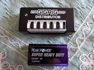 第二話はThe GigRig社の「 Distibutor」。これもToneBlueさんが輸入販売している。横6.5cm×縦3cm×高さ3.2cm(突起含む)の筐体なのだが実際は数字以上に小型に見える。これはGenerator等のパワーサプライから各ペダルへ電源を分配するツールとなっている。