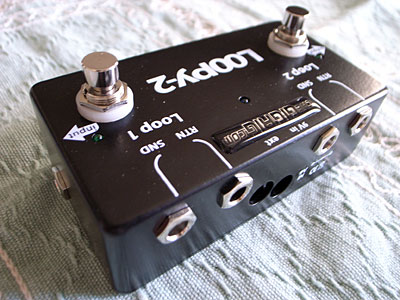 肉厚のプラスチックスペーサーがスイッチにかまされているのでノイズが少なく、かつ大変踏みやすいスイッチとなっている。このスイッチャーにも同社のWet Box同様、高性能なバッファーが入っているらしいのだが全く気にならない。かえってプラグの接点が増えた事による劣化をカバーリングしてくれているのか?と思ってしまう。このルーパーの機能は説明するまでもないが、内部のDIPスイッチの設定でそれぞれのループのON/OFFとスイッチングする度にLoop1とLoop2が切替えるモードに設定出来るようになっている。これを使ってWet BoxのON/OFFをしようと画策中である。ただ、ただ、ただ、お気軽セット構想からだんだん外れていっているような状態に陥って…..(^^;)いいっすよこれ。