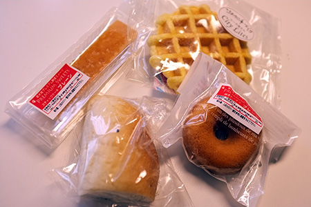 それと別の棚を見るとスイーツと焼きたて風パンが…まじっす。で、写真のパンとドーナッツ・スティックケーキ・ワッフルを購入です。恐るべしペット業界…こちらもどツボにはまってます(^^;
