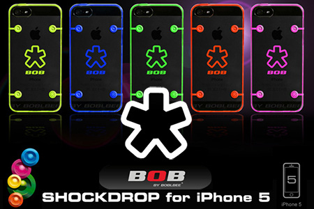 パワサポのフラットバンパーを使用しているのだがちと気分を変えてケースを新調した。プラスチック製モノコックハードシェル構造でつくられたバックパックで有名なBOBLBE-E、その新しいプロダクトラインBOB by BOBLBEE初の商品「ShockDrop for iPhone 5」ってぷち派手なケースである。現在5色で展開中。