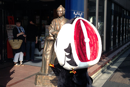 BDプレゼント物色後近くにある高知のアンテナショップへ生姜を刻んでタレ(醤油)に漬け込んだ味つけ生姜「万能おかず しょうが」を買いに行ったらこの猛暑の中頑張ってました。このゆるキャラは「グロゆるキャラ」ってカテゴリーなんだとかで「カツオ人間」って言うのだとか。前はカツオ、後はさばかれたカツオ…ほんとにグロいんでやんの。よくこんなキャラを作ったものだと思いましたね。