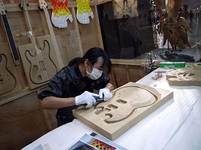 日本の代理店はNeuvellaxeとなっている。また同代理店は39フレット・2.75Kgの恐ろしい音色のBassLAB社製「JINMOID」(上右写真)を販売している。可能な限りのモノコック一体型で…永遠なるサスティーンだった。
