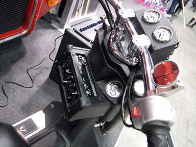 本日の〆はVox…ド派手な二階建てバスとバイク野郎+ギタリストにはたまらないアンプ付きバイクをば。な、な、なんとちゃんとジャクインも付いている。さらにフットレストがVoxワウペダルになってるのが◎…マジで興味あり(^^;)…発売したら買う気満々かも(笑)