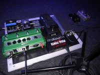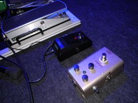 写真(中段)はルカサーさんのペダル。写真(下段)はロベンさんのペダル。ロベンさんのボードの脇にプラグもささずに使い込んだTubeless Over Driveが置いてあった。先日逝去したSakashitaさんを偲んで一緒のステージに上げたのだろうか。