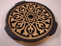 早速Martinのサウンドホールへ装着してみた。ホールの直径を計って注文したので見事ぴったりだった。(直径9.8cm)色もボディと差がありキレイ。彫刻もなかなかシブい。