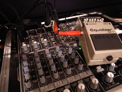 次にInsertケーブルを使用して乱暴ではあるが頂いたGE-7をミキサーに接続。出音には先日ゲットしたJBL EON501パワードモニターを使用…ミキサーのアウトからキャノンでステレオ接続。