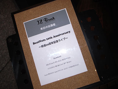 7時半を少し回った頃にライブスタートBeatNutsの面々は最近になく心なしかお洒落な服装で登場(笑)カウントと共に緊張感ある音が聴こえて来た。
