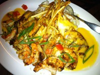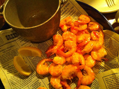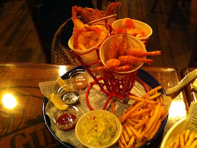 スチームド・クラムとシュリンバーズ・ヘブン…アサリのバター蒸しといろいろなエビたち。ココナッツフライ、フライ、天ぷら、殻付きカクテル。