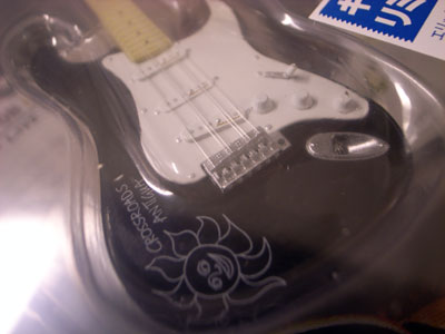で、このレプリカ細部にわたって傷とか、タバコの焦げ跡とかブラッキーを再現しているものではなかった。カスタムショップ製のCROSS ROADSストラトキャスターの1/8レプリカとなっている。なのでクラプトンのデザインしたいた太陽マークがボディーに描かれている。いっちょ前にピックアップに金文字でNoiselessと書いてある。Mini ’57 Twin Ampを揃えてドールハウスみたいにしても面白いかも。