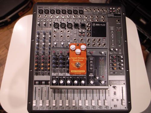 ラリー先生のシステムを目指しミキサーを導入…USEDを探した。Mackie ONYX 1620、最新機種1620iの一世代前のモデル。今まで使っていたMackie 802VLZ-3はAuxの数が1つしかなくChorus、Delay、Reverbと単独でエフェクト音をかける事が出来なかったし、それぞれをステレオで出力するにはチャンネルもたりなかった。また、ここが肝だと思うのだが、ONYXのマイクプリが良いのではないかと思っている。なにしろ先生が使ってるしね。写真は802VLZ-3、大きさ比較のためにMXRサイズのペダルを乗せて撮影した。
