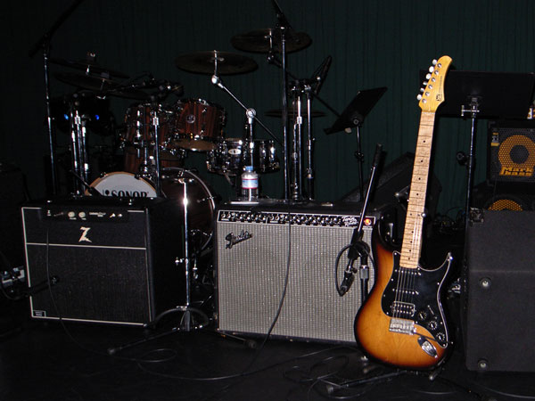 お決まりの機材チェック。アレンさんの足元はXoticのビデオでお馴染みのセット。アンプは どのタイミングで使い分けたか分からないがFender Twin ReverbとDr.Zのコンボを使用していた。ギターはオフコースXoticの彼のモデルと思いきや…殆どGibsonレスポールを使用していた…SX-2は2曲だけ…orz。